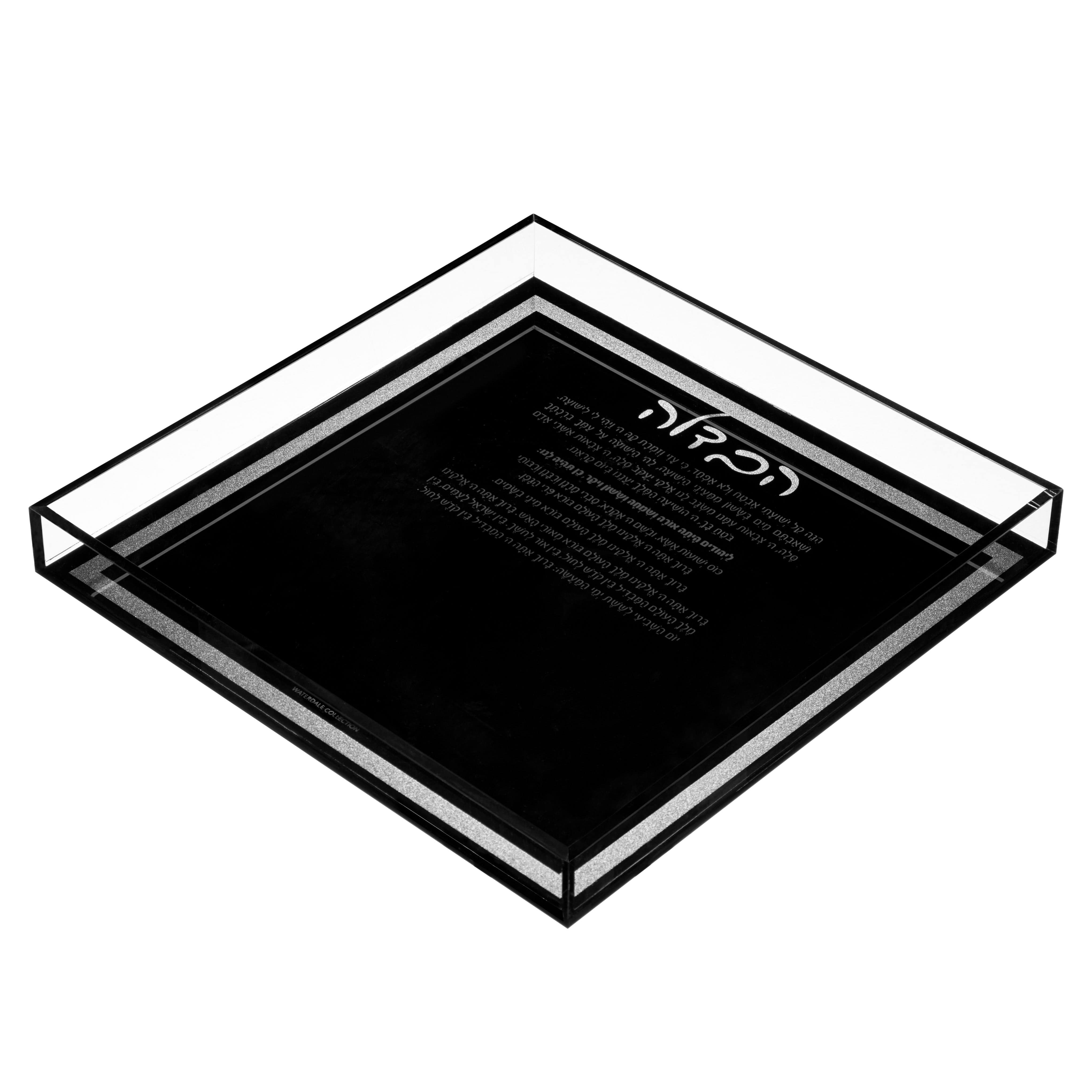 This stunning Lucite Havdalah Plate will make a striking addition to your Havdalah table. Features clear lucite sides, black or white lucite on bottom, and a gold metallic print. Both practical and beautiful, this Havdalah plate would make a great gift