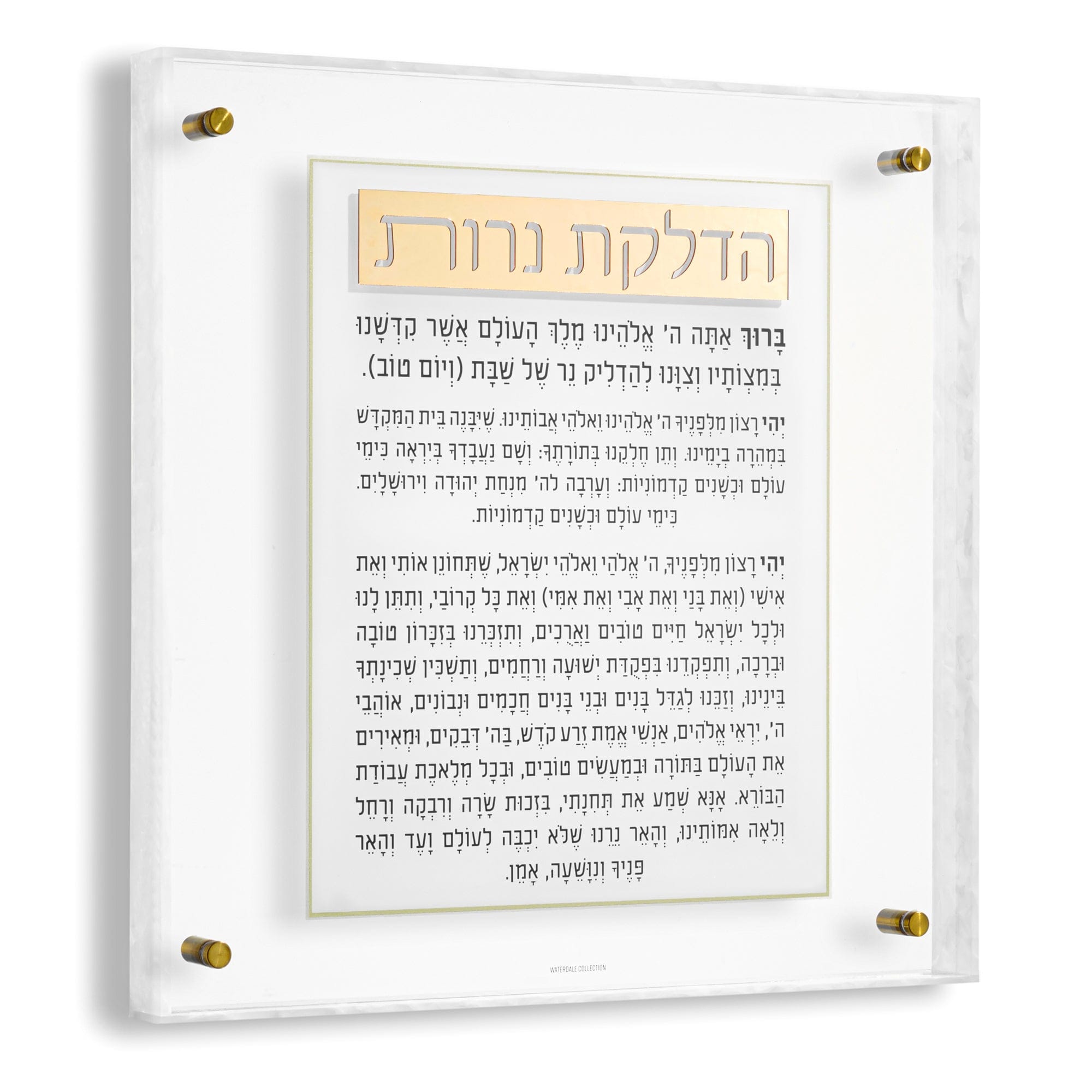 Bring a refined touch to your Shabbos and Yom Tov candle lighting with this stunning Pearlstone Hadlokas Neiros Wall Art (הדלקת נרות), beautifully displayed in a luxurious pearl marble frame. Perfect as both a functional guide and an elegant centerpiece, this lucite Judaica décor piece adds timeless beauty to your home.