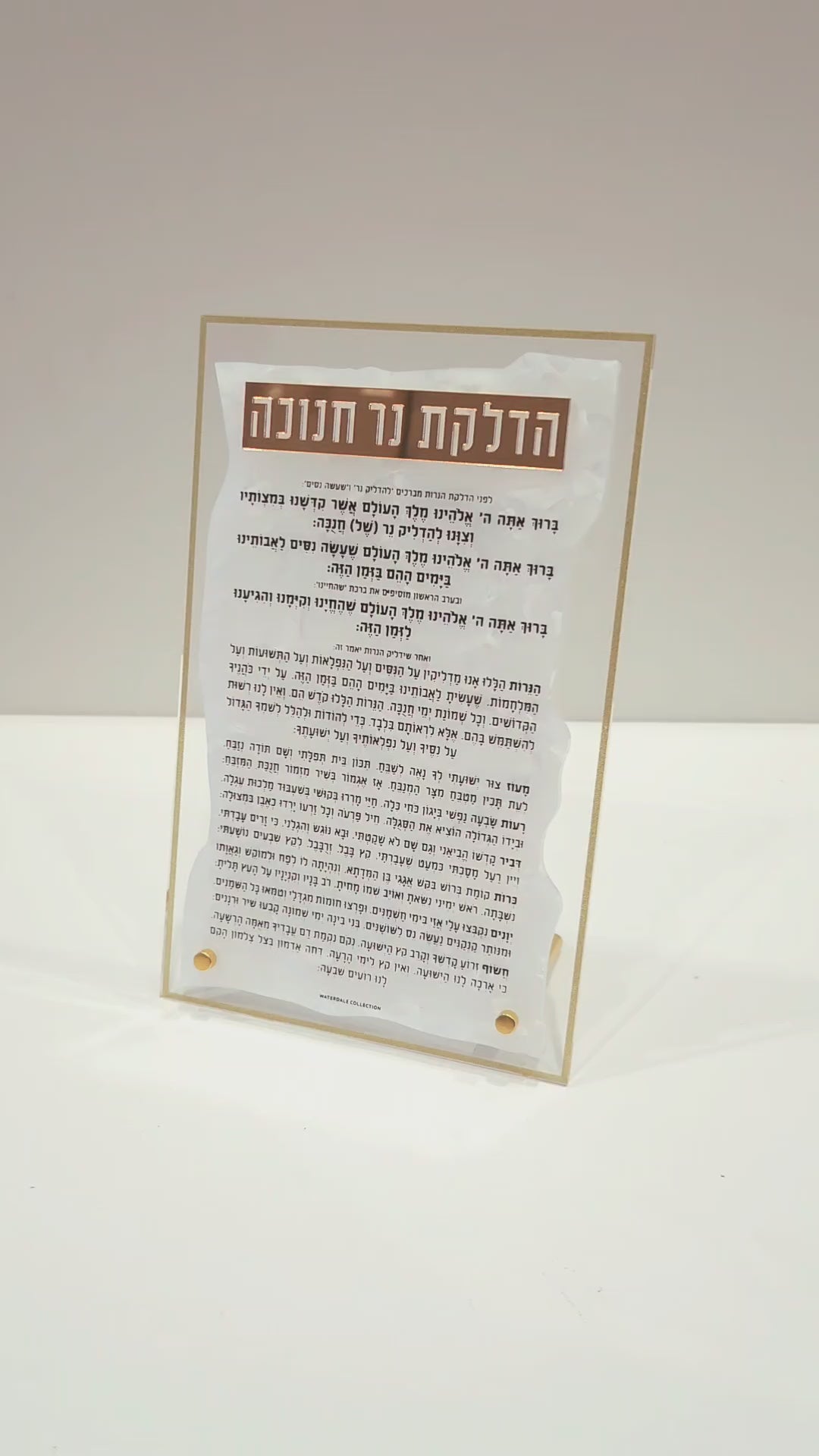 This stunning Classic 2.0 Chanukah Brachos Block With Lighter (חנוכה) is freestanding, sleek, and the perfect practical addition to your Chanukah menorah lighting. Combining timeless elegance with a touch of freshness, it features a crisp white background set against chic, luxurious lucite for a modern yet classic look. Metallic and mirrored details elevate the design, creating an easy-to-read and truly gorgeous display.