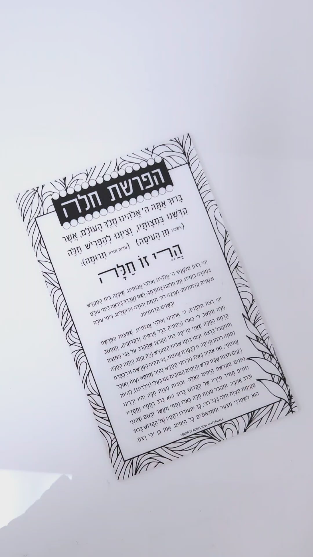 Color Your Own Lucite Hafrashas Challah Card