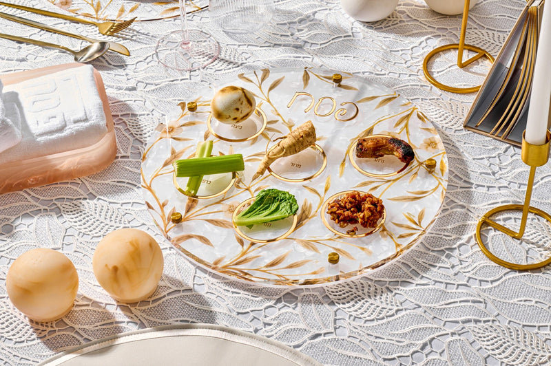 Watch the video to see how we styled this stunning Pesach seder tablescape and recreate it easily for your own Pesach Seder.