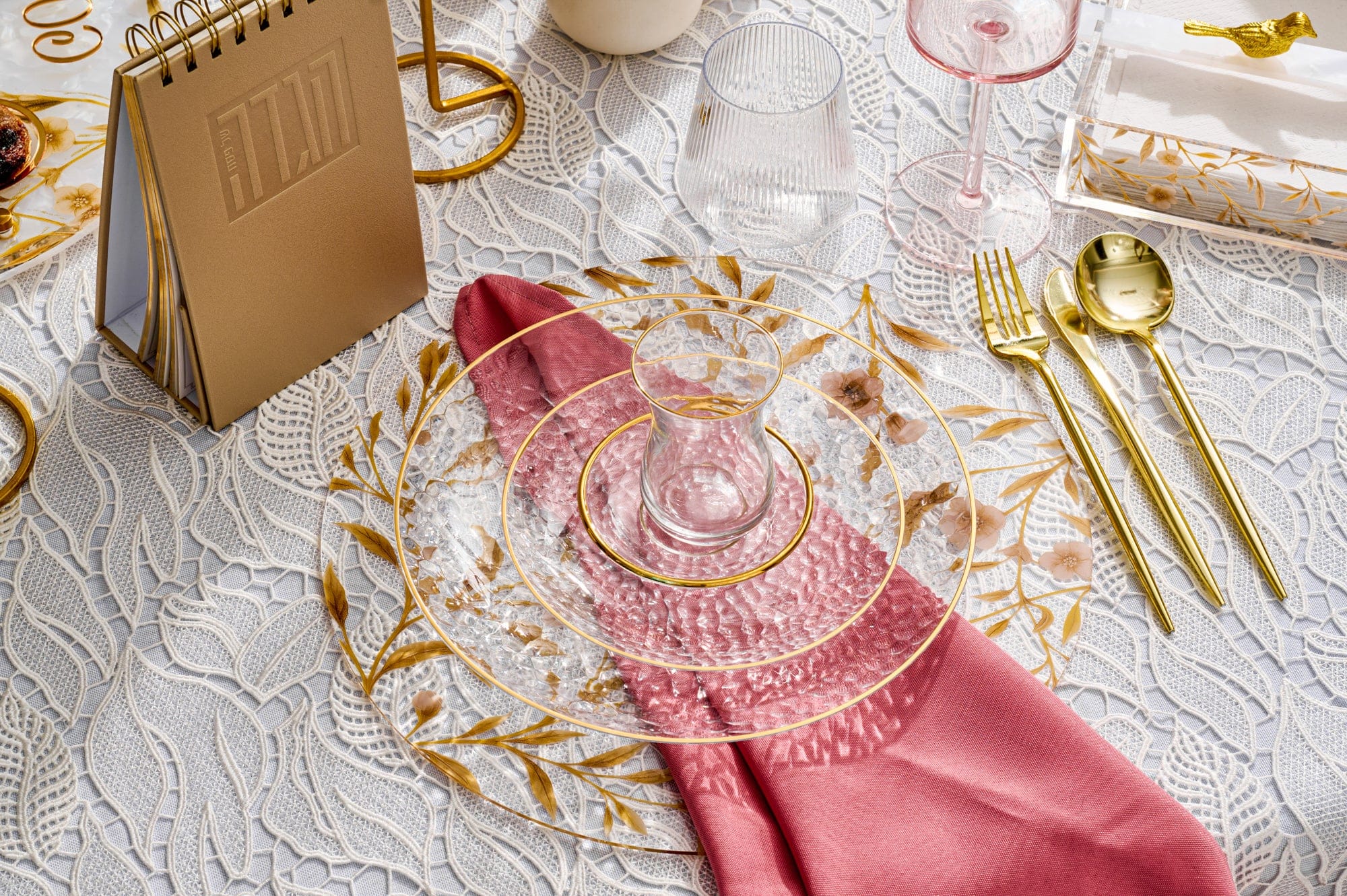 Recreate this beautiful tablescape using Posh Settings premium plastic tableware. Designed to look elegant while keeping cleanup effortless, this full place setting gives you the style of real dinnerware with the convenience of disposable.