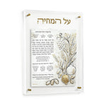 The Painted Frame Al Hamichya (על המחיה) is a refined interpretation of classic Judaica, featuring a hand-painted artwork with rich texture and soft pearl tones. Accented with warm gold details and a die-cut metallic heading, the composition brings depth, movement, and elegance to the ברכה (bracha) recited after eating grain-based foods.