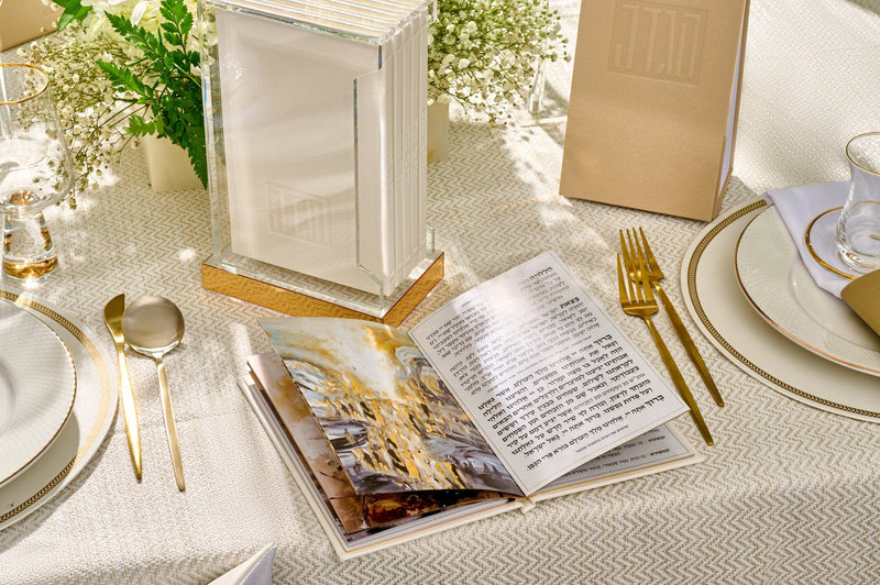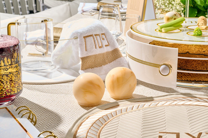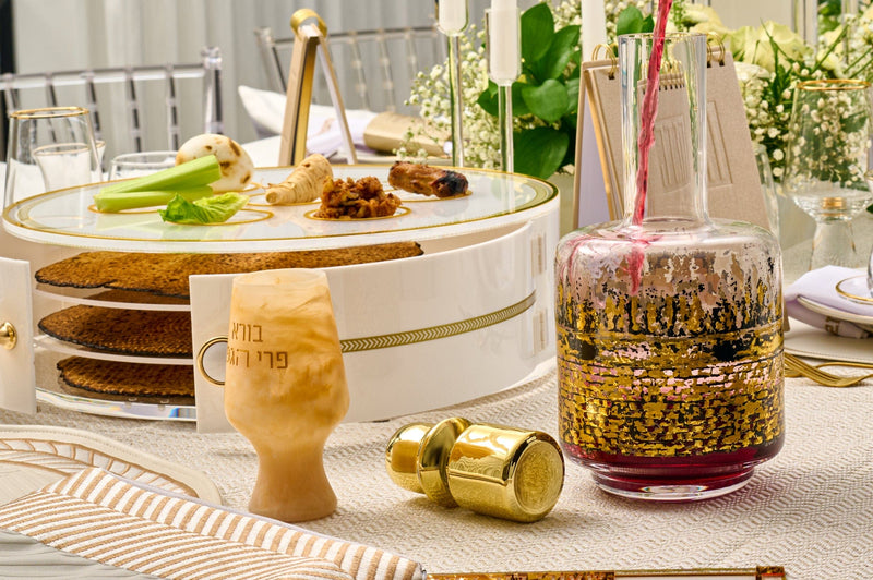 Watch the video to see how we styled this stunning Pesach seder tablescape and recreate it easily for your own Pesach Seder.