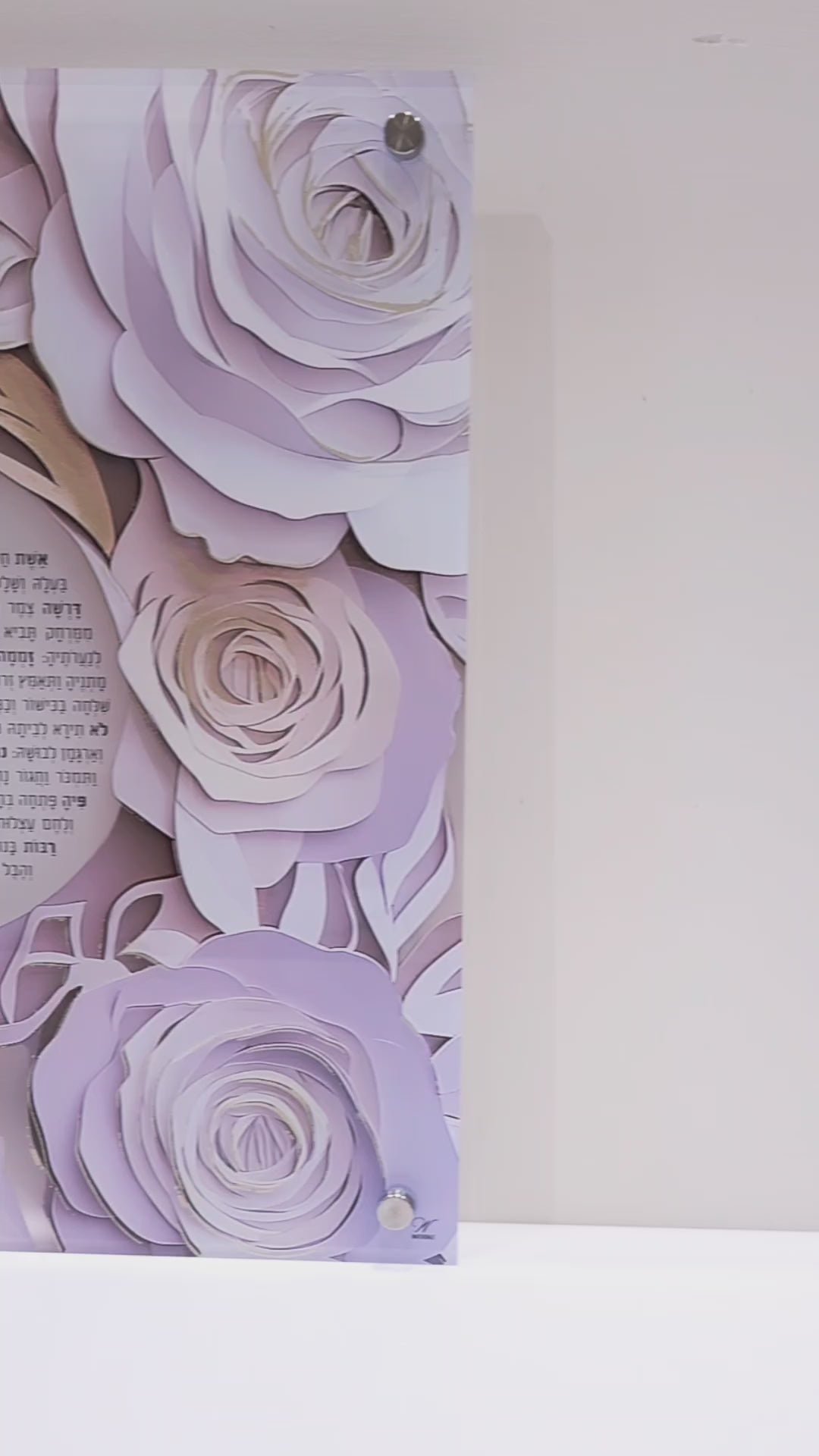 Elevate your home décor with this stunning Eishes Chayil wall art, beautifully designed with an intricate papercut floral motif. Printed on premium crystal-clear lucite with frosted details and metallic gold highlights, this artwork captures the timeless beauty of the Eishes Chayil prayer in a modern, elegant style.