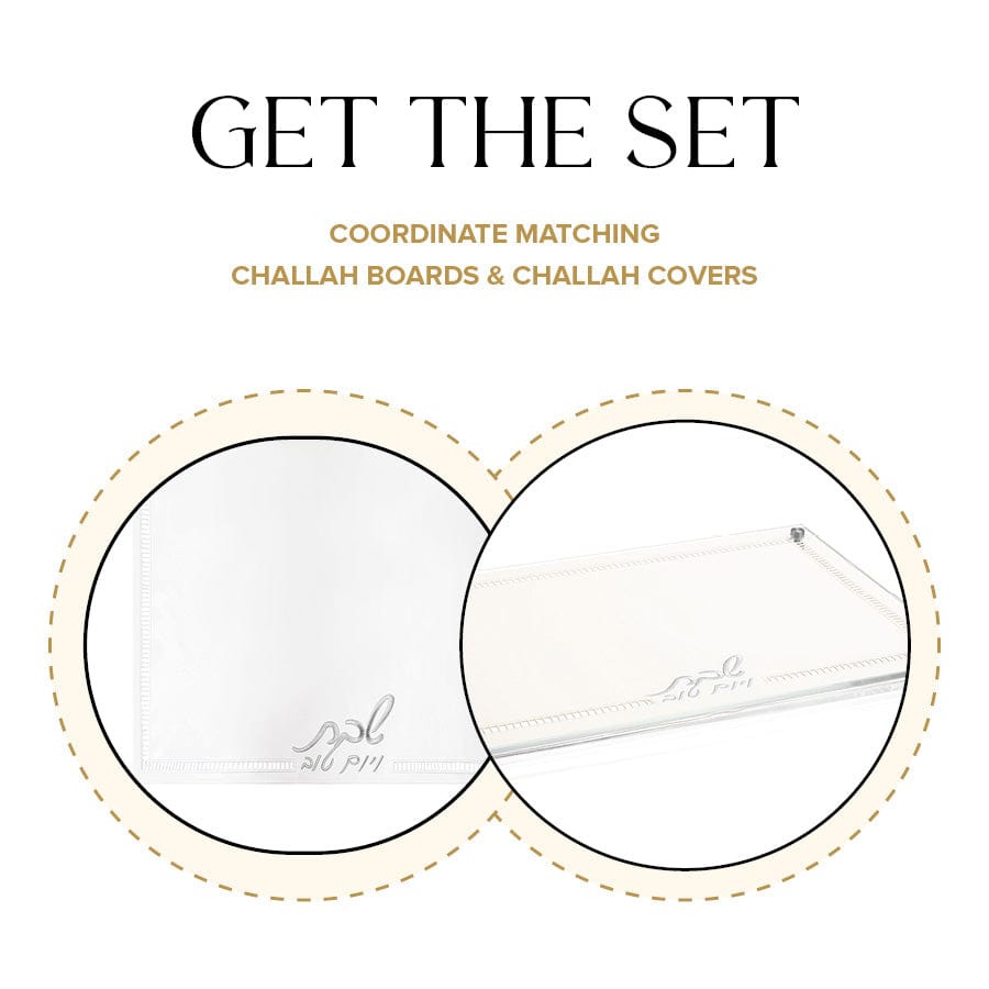This magnificent Leather Challah Cover will make a striking addition to your Shabbos table. Unique design looks gorgeous when laid on top of Challahs. Features white leather with a classic line border. Premium quality & feel! Both practical and beautiful, this Challah cover would make a great gift.