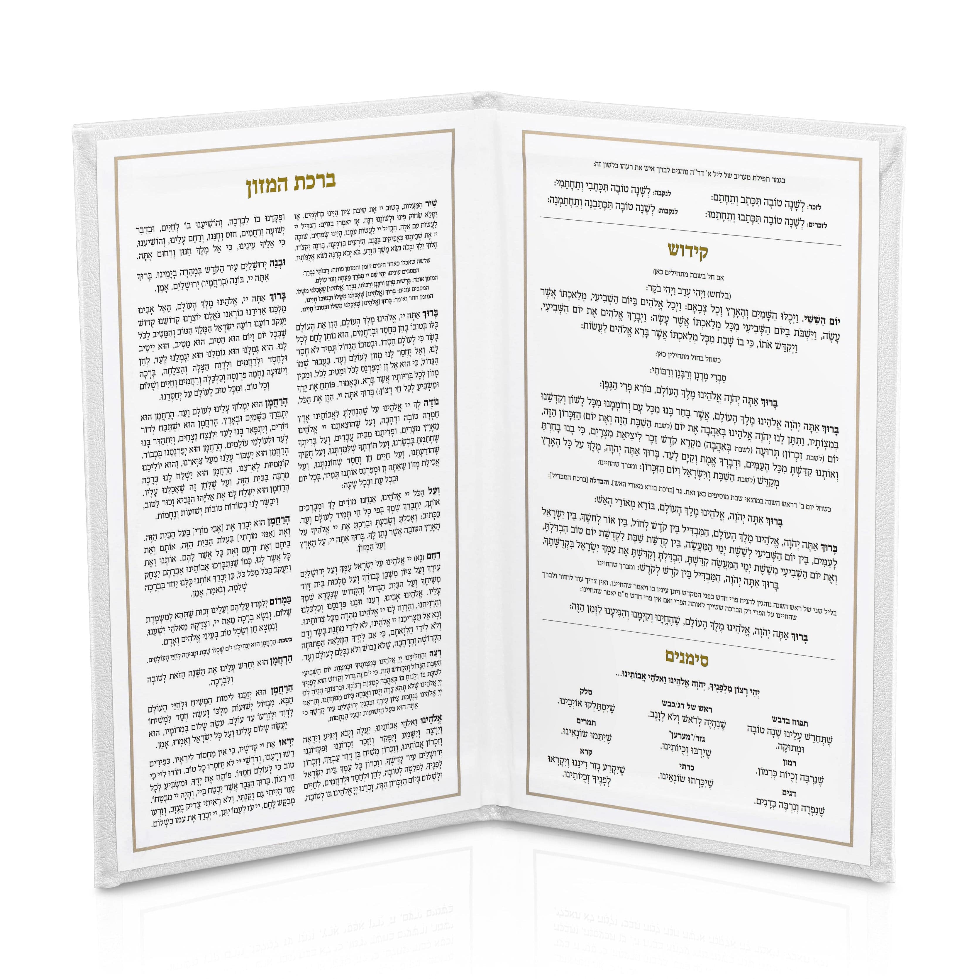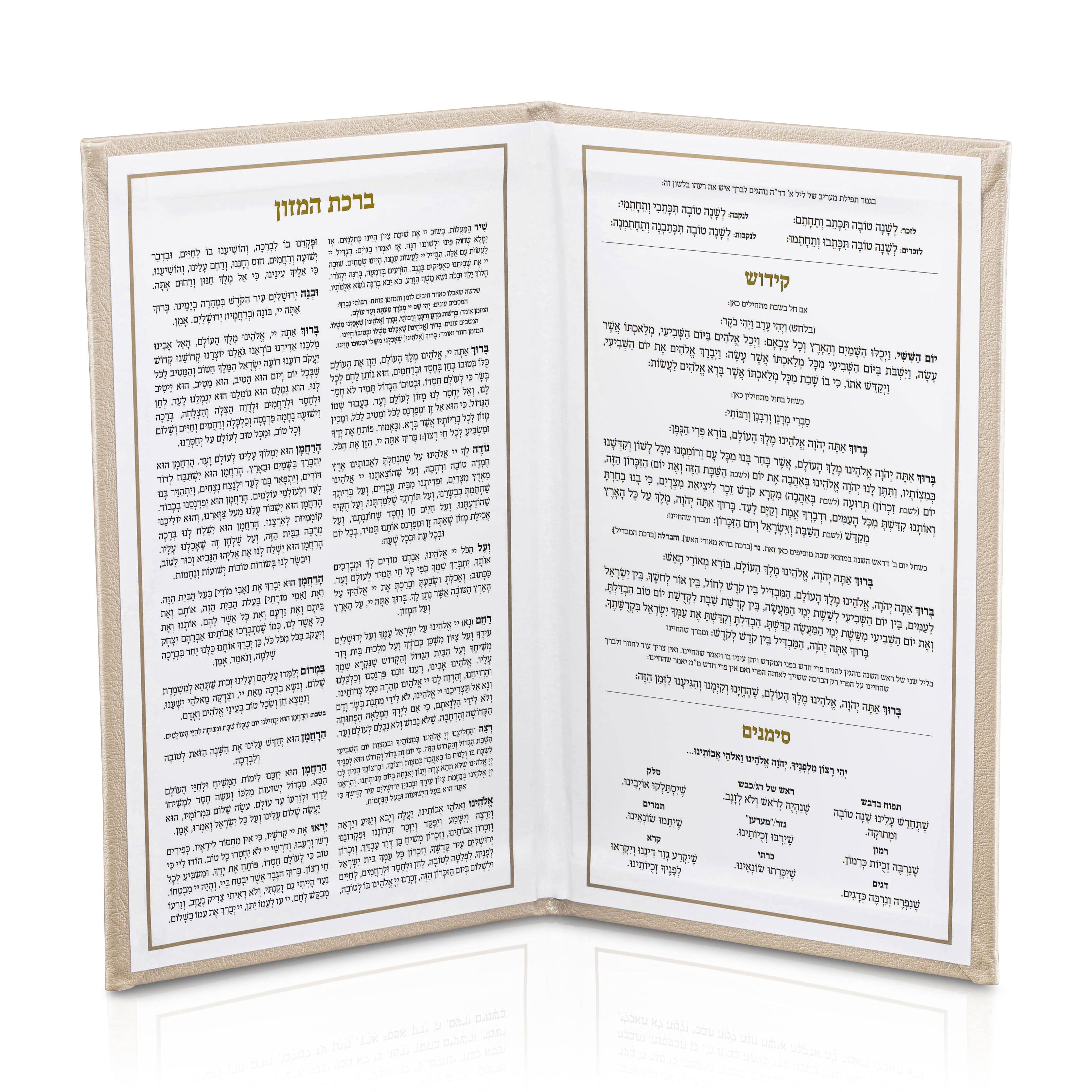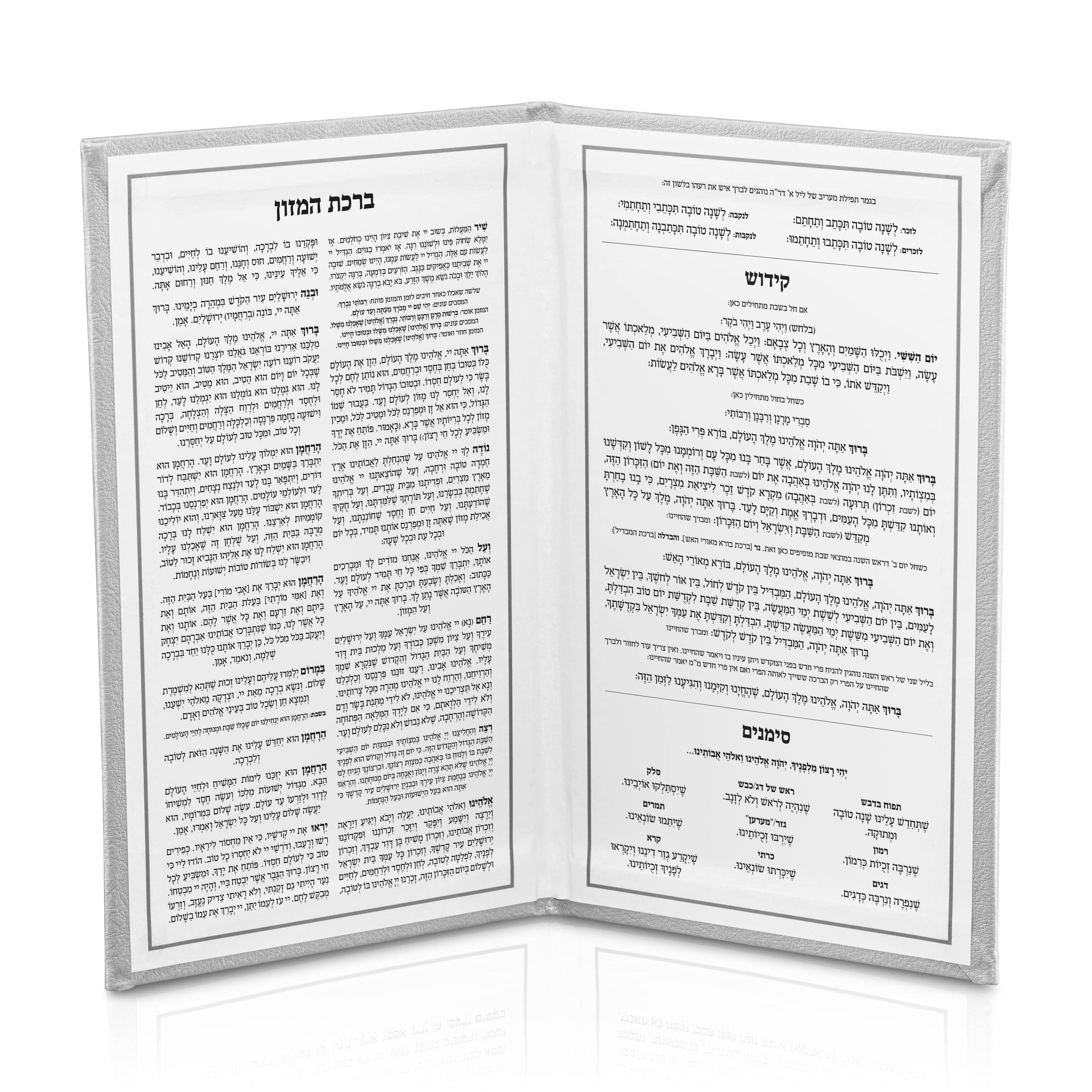 Leather Rosh Hashana Booklet that includes Kiddush, Simanim and Bentching. The perfect and practical addition to your Rosh Hashana table! Great Rosh Hashana gift or event handout.
