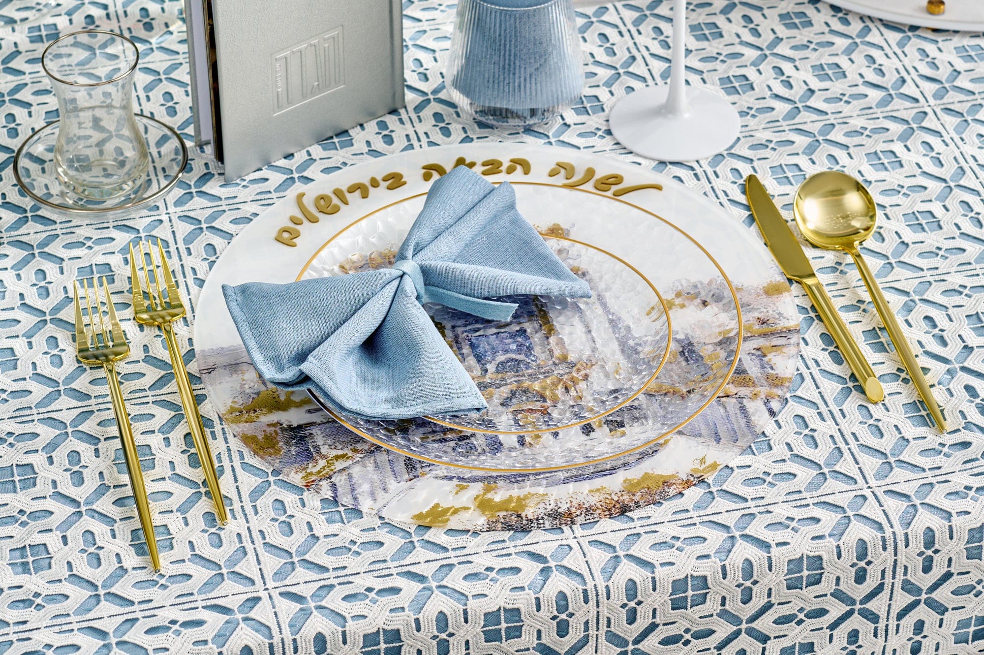 Watch the video to see how we styled this stunning Pesach seder tablescape and recreate it easily for your own Pesach Seder.