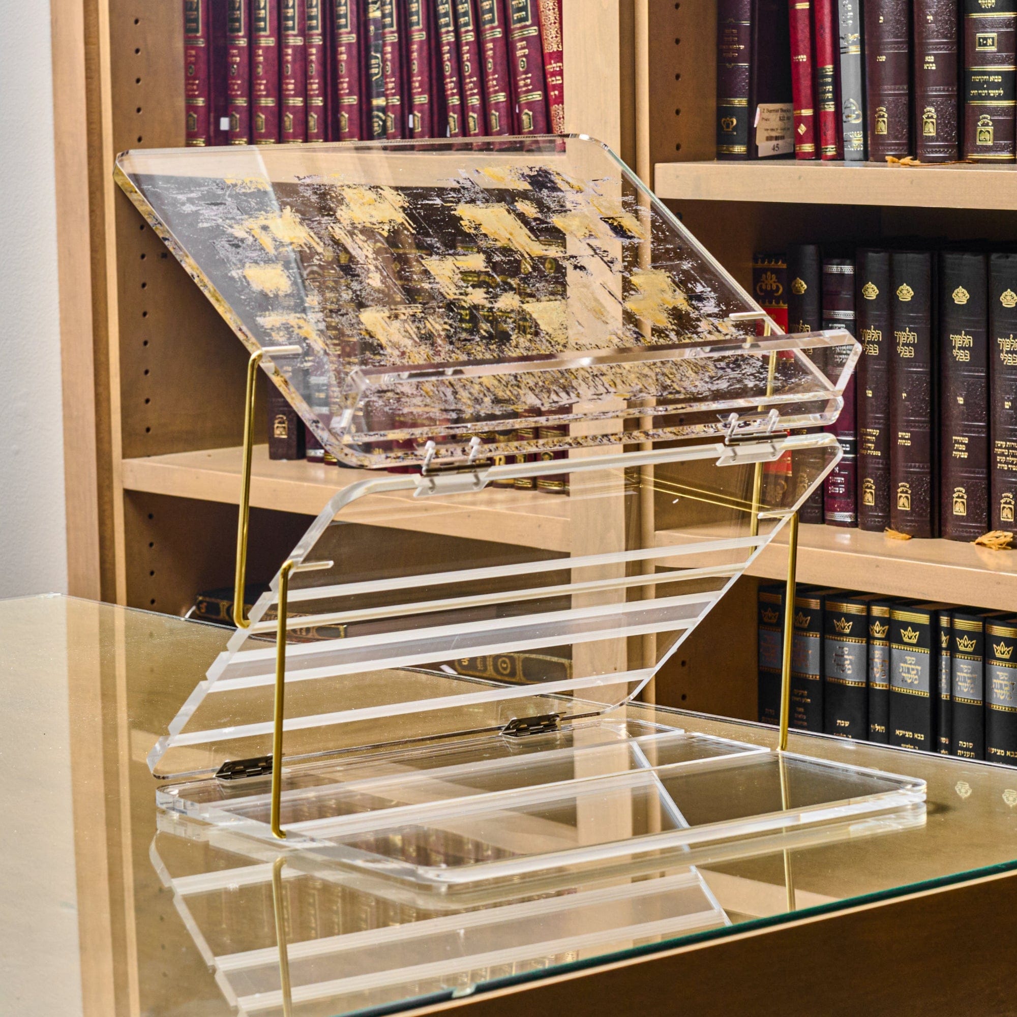 Featuring a sleek Lucite finish and a unique hand-painted Kosel (Western Wall) design, it’s the perfect blend of modern Judaica and functionality. Ideal for Bar Mitzvah bochurim, men, or any learner seeking a space-saving, stylish study solution.