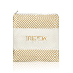 This Herringbone Leather Afikoman Bag is a refined Pesach essential, designed to bring elegance and function to your Seder night traditions. Featuring a textured herringbone leather design with gold-accent detailing and the word “אפיקומן” embroidered at the center, it offers a timeless look that complements any Seder table.