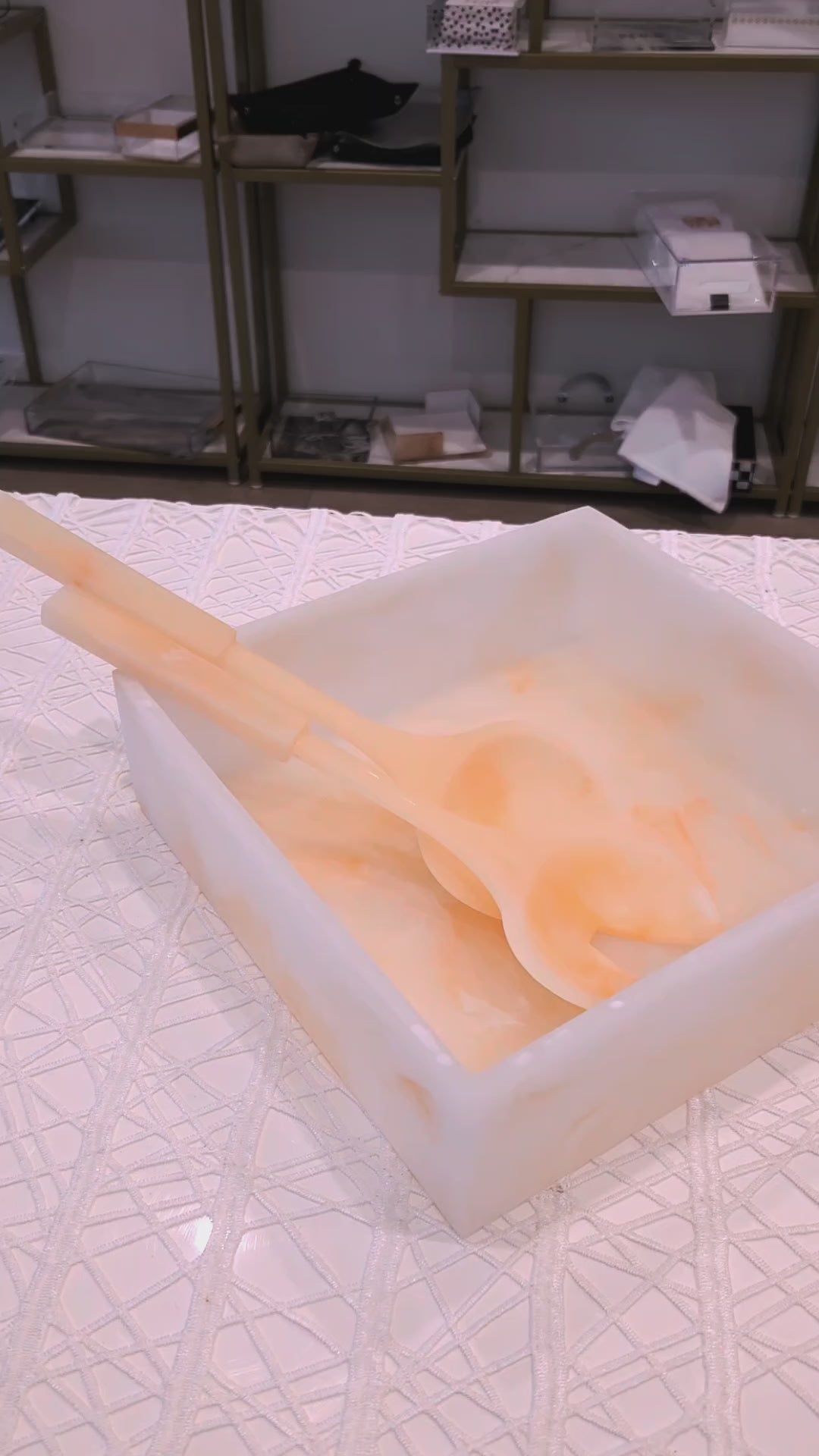 Handcrafted from durable premium resin, they’re perfect for tossing and serving salads, fruits, or pasta dishes. Their contemporary silhouette complements any table setting and adds a touch of modern luxury to every meal.