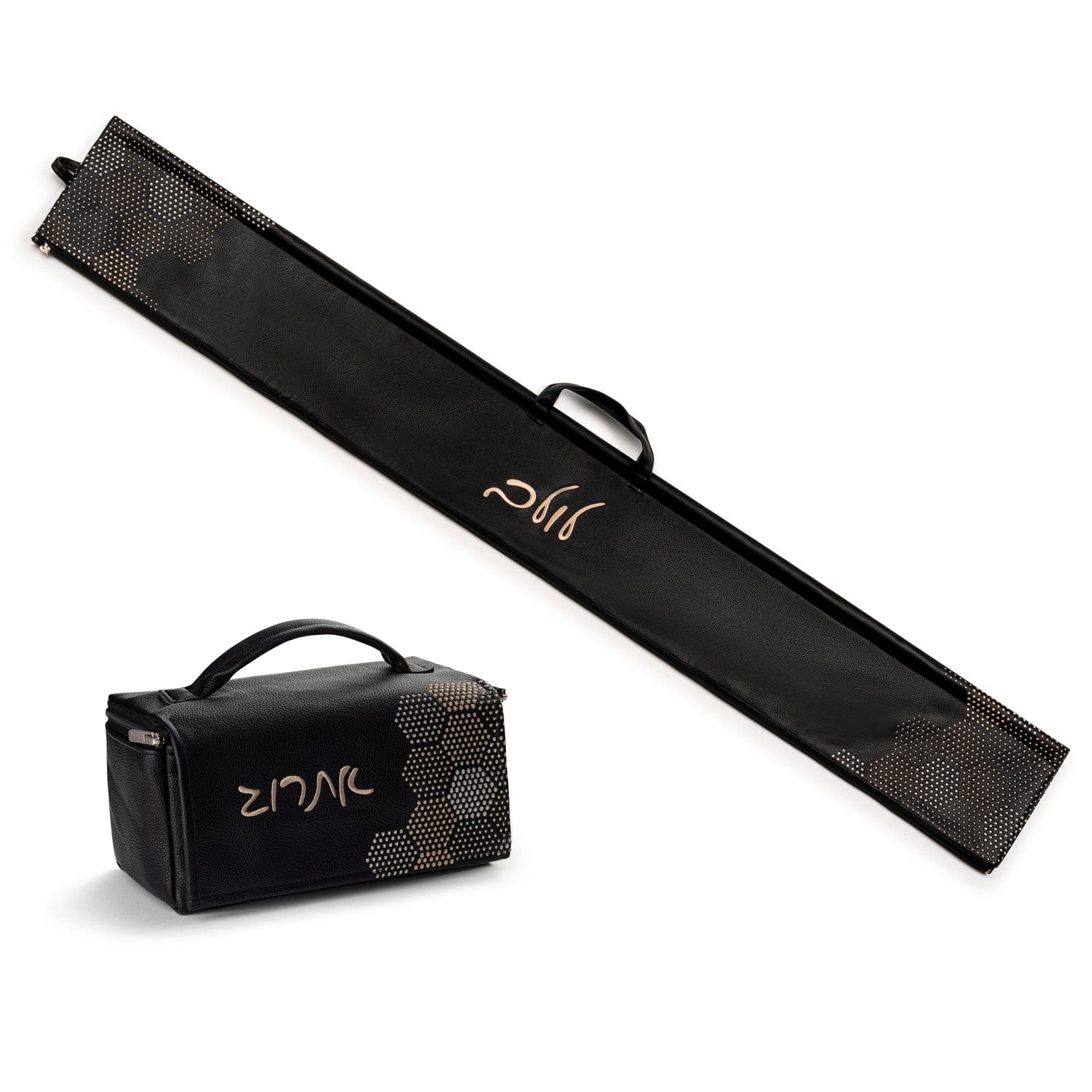 These magnificent Faux Leather Lulav Cases will make a striking addition to your Sukkos. Includes lucite Lulav Brachos card, a loop on top for storage, handles, and top and bottom bars to be extra sturdy. Extra pole on the same side as the handle for easy carrying. Now with upgraded thicker leather and lined with satin to keep your Lulav from sticking. Superb quality! Coordinate with a matching Esrog bag.