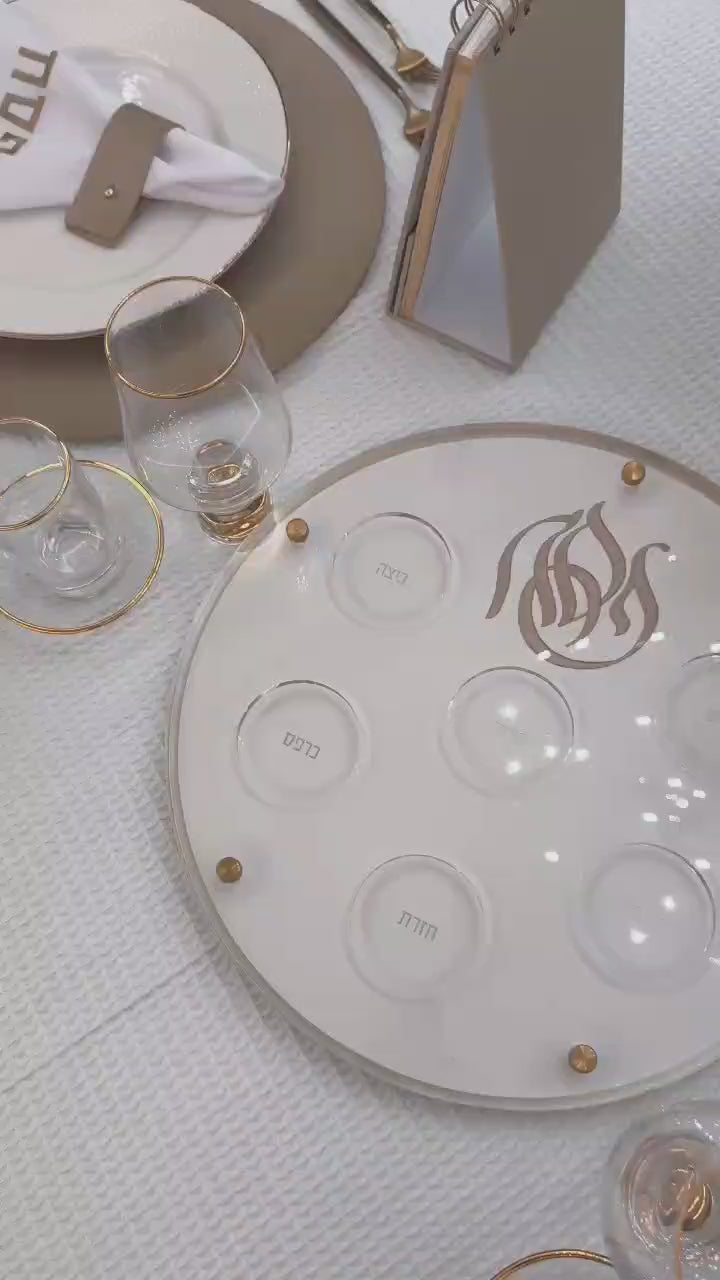 This beautiful Regal Seder Plate & Matzah Box is the next level in Pesach display! Neat, classic, yet so much style for a Pesach table. Perfect woven leather detailing.