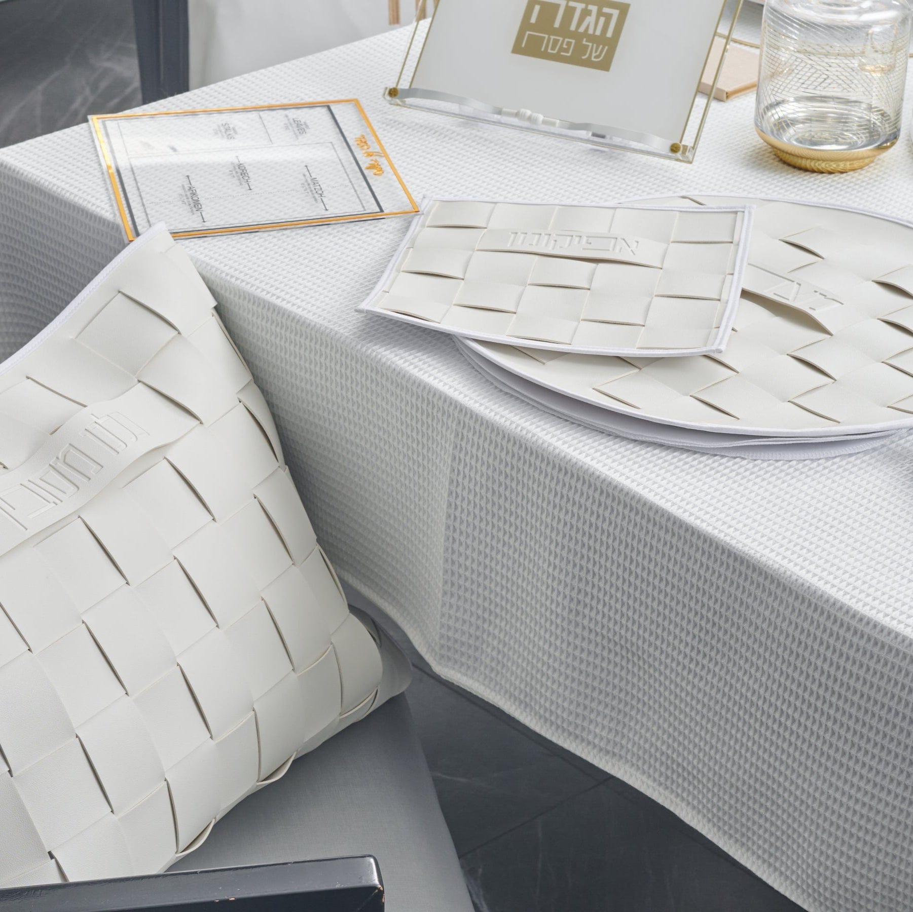 Woven Leather Pesach 2025 Tablescape