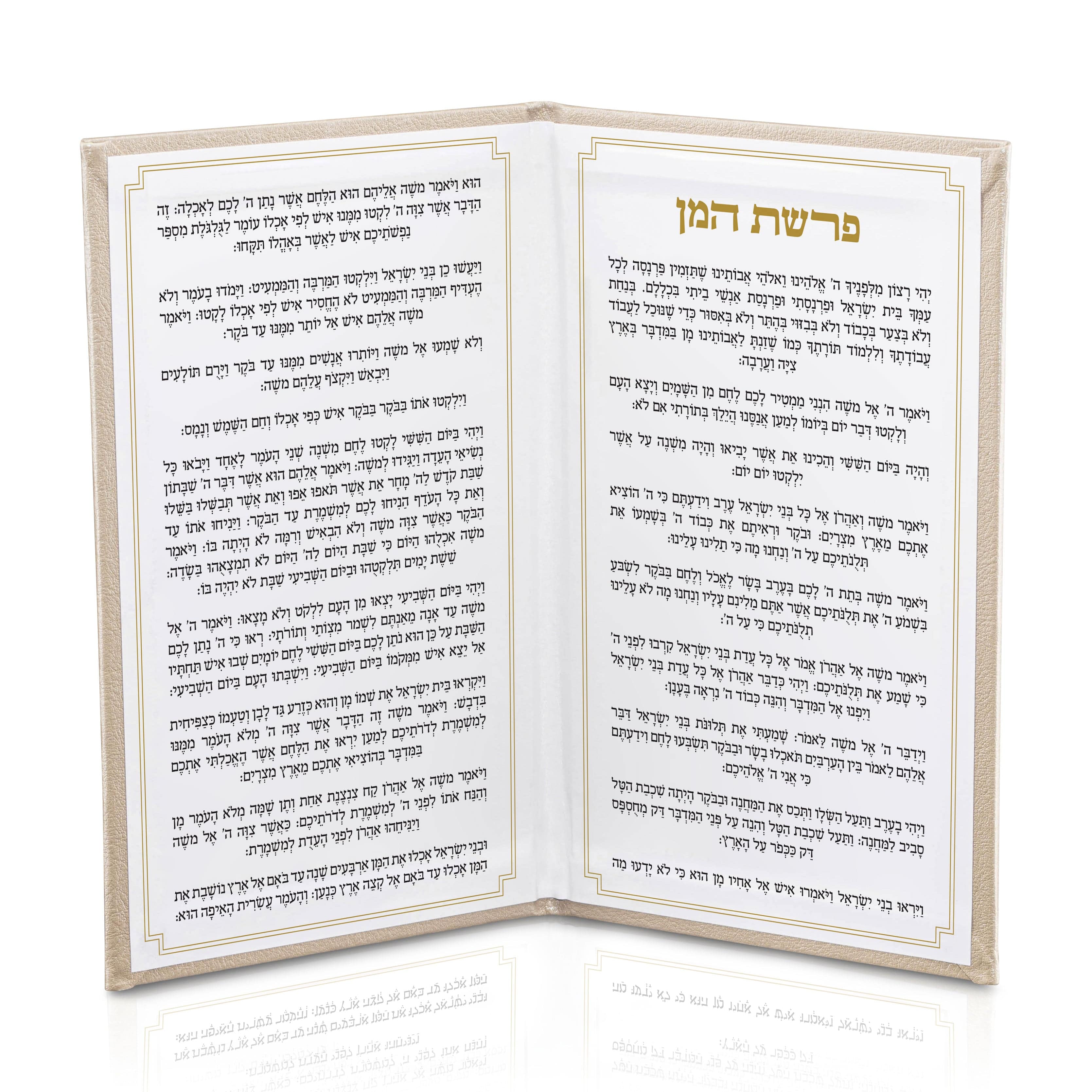 This Leather Parshas HaMan Book is both beautiful and a segulah for Parnasah. With its elegant design and time-tested tradition, it serves as a powerful Tefillah for financial success.