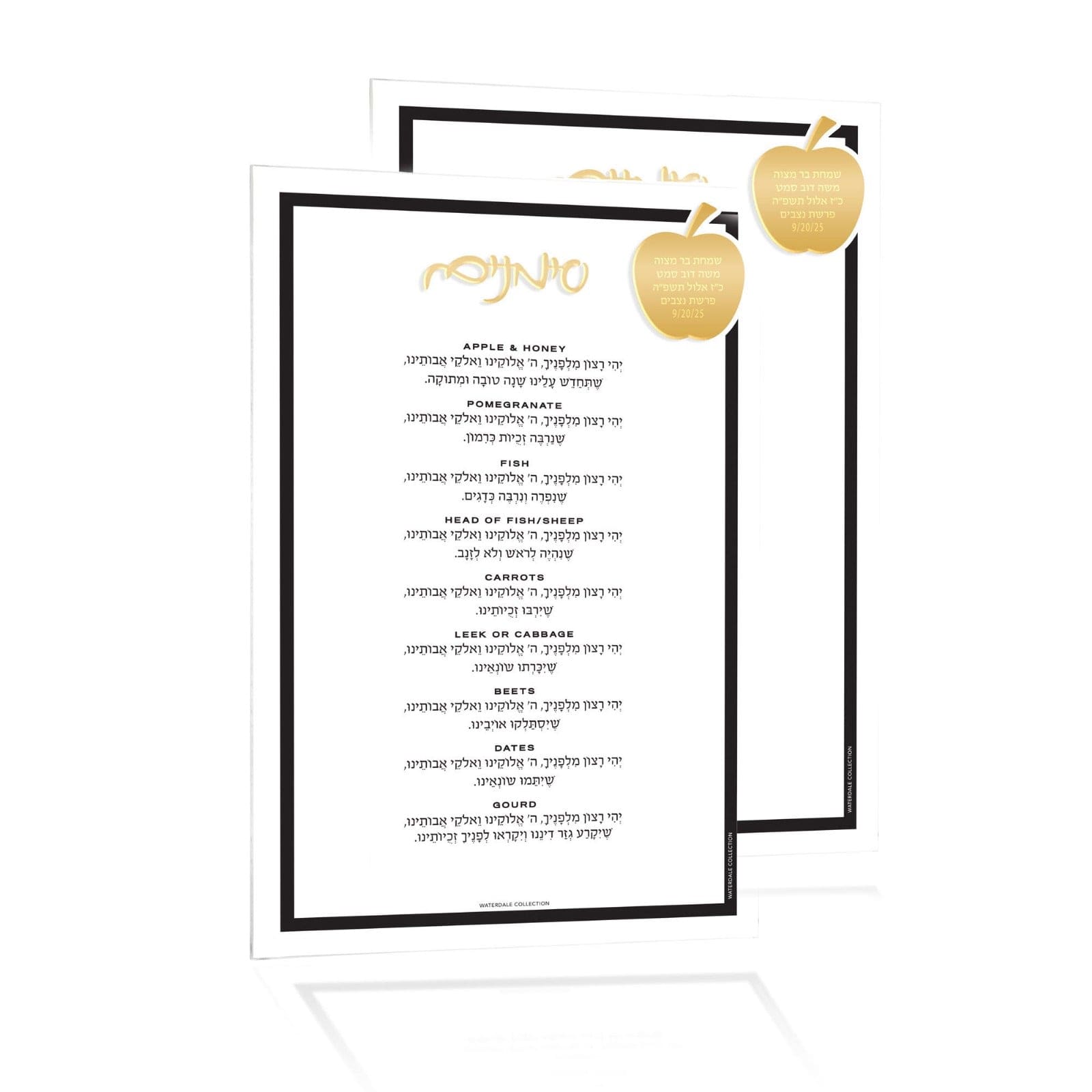 This stunning Rosh Hashanah Diamond Gift Box includes our signature Diamond Honey Dish and Diamond Simanim Card Set, beautifully packaged in a custom Waterdale gift box with precision foam cut-outs to keep each piece secure.