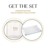 This magnificent, one-of-a-kind Lucite Challah Board & Leather Challah Cover will make a striking addition to you Shabbos table. Featuring a geometric design. Lends the perfect class to your table!