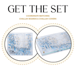 This magnificent, one-of-a-kind Lucite Challah Board & Leather Challah Cover will make a striking addition to you Shabbos table. Featuring a unique, abstract blue & gold Kosel painting. Lends the perfect class to your table!