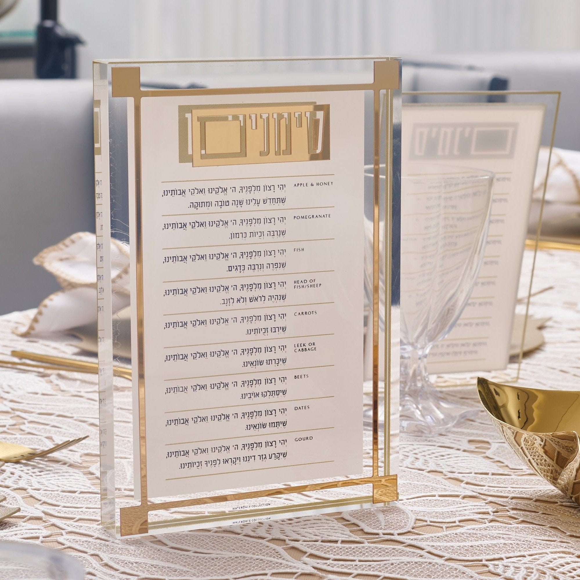 This stunning Classic 2.0 Simanim Block is freestanding, so sleek, and the perfect and practical addition to your Rosh Hashanah table! Set by each seat or use as a gorgeous centerpiece. Wipe down, honey proof, and water proof.