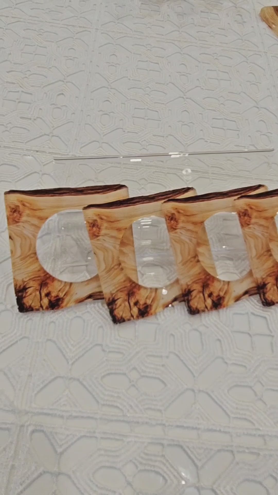 Wood Print Lucite Napkin Rings.