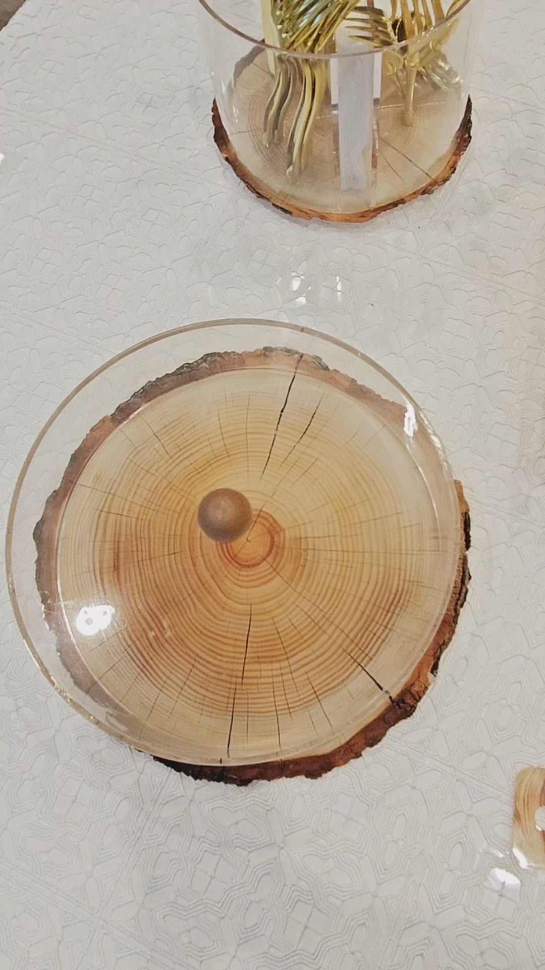 The Lucite Wood Square Salad Bowl is a bold blend of rustic texture and modern design, featuring a fully wood-wrapped interior framed by sleek, crystal-clear lucite walls. Its clean square shape and warm wood grain make it a standout serving piece for salads, fruits, or side dishes, while adding a sophisticated, contemporary touch to any tablescape. Both functional and decorative, this handcrafted bowl is perfect for everyday dining or elegant entertaining